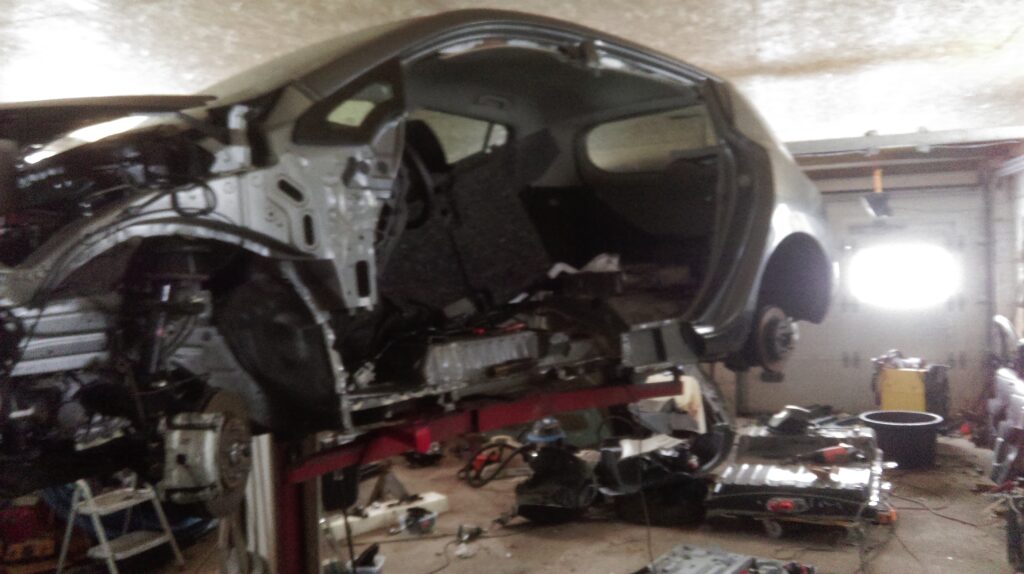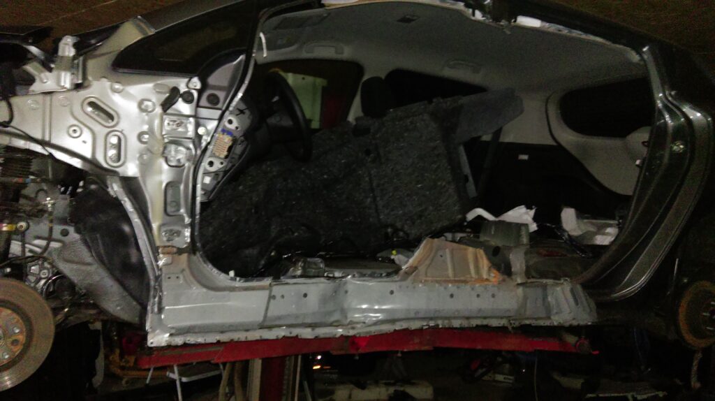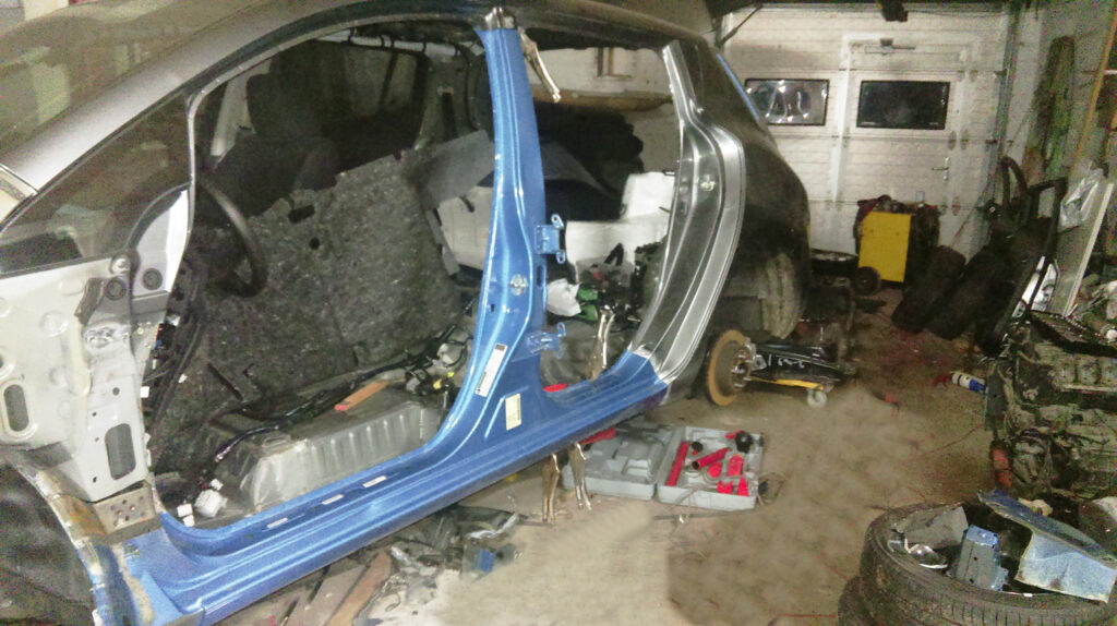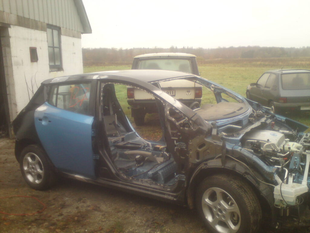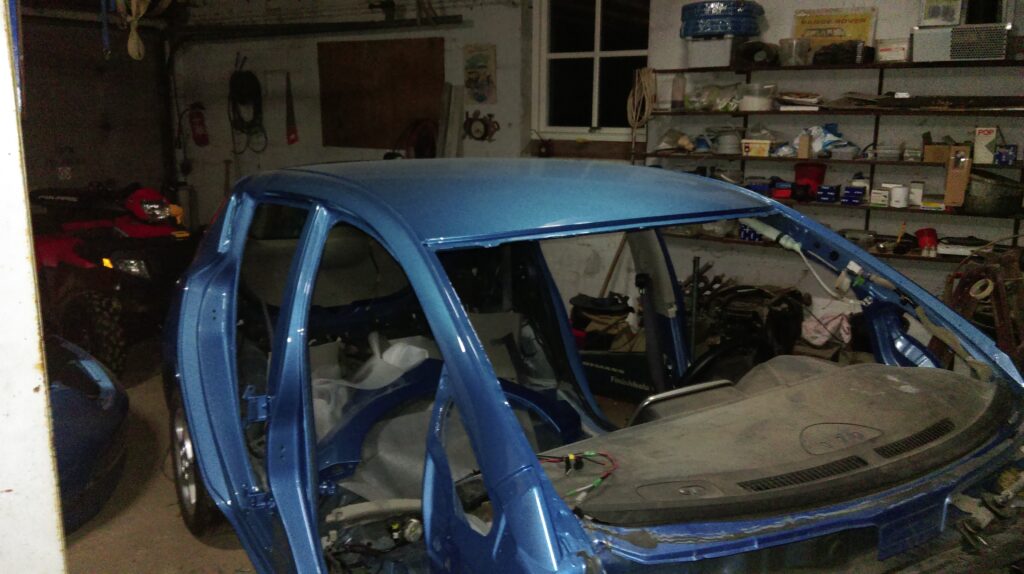 Will this be a car again?Disammeled car ready for installing new outer panels.Ready for paint shop.Arrived from paint shop and ready for final assembly.Past inspection with DK licens plates. Project number 2 old AVIS car from DK total damaged only 3 months old with 3.000 km on the clock.Panels removed and car staightned out.Welding procces of new panels.Back from paint shop.